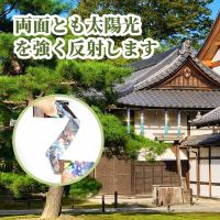 [設置簡単 どこでもタイプ] 丈夫な素材でつくられているので、どこでも取り回ししやすく、風のない日であれば、一人でサクサク設置できます。ハサミで適当な長さに切り、キラキラと風になびくように結んだぶら下げたものを一定間隔で取り付けます。そうすることでなびきやすいし、テープが揺れた時にカサカサ音もするので効果が大きいですが、鳥が寄り付かなくなります。それともこのテープ輪を作ってセロテープで止め、風で揺れるようにゆるい輪を設置場所のあちこちに沢山巻いたところ、鳥よけ効果が驚くべきです。また、テープで軽いので、万が一台風などで飛んでいって、事故が起こる可能性もゼロです。気にせず色々なところに取り付けできます。