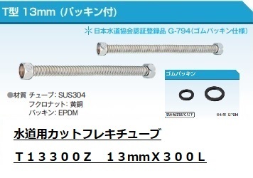 水道用カットフレキチューブ 13mmX300L(ゴムパッキン付)