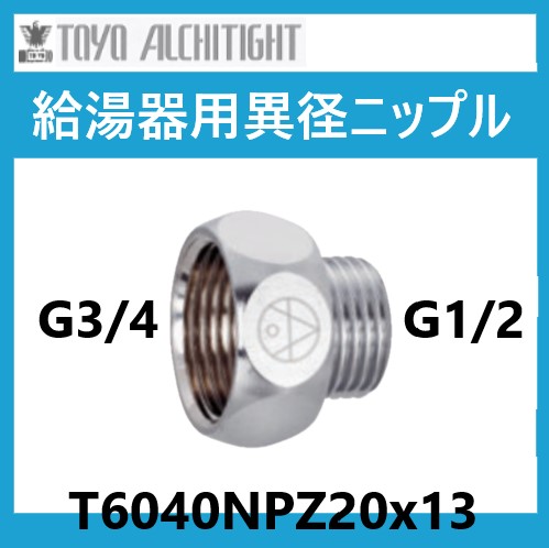 給湯器用異径ニップル(パッキン付) T6040NPZ 20X13 東洋アルチタイト産業