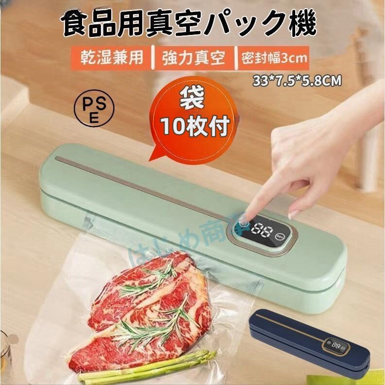 真空パック機 真空パック器 真空パック 袋10枚付き 家庭用 業務用 フードセーバー 小型 キッチン 60Kpa 強力 乾湿兼用 シーラー フードシーラー 真空包装機