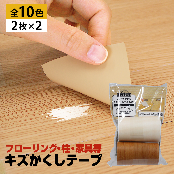 貼るだけ簡単!キズかくしテープ。 フローリングのキズかくし、ドア、柱、家具などのキズ隠しにや保護に使えます。