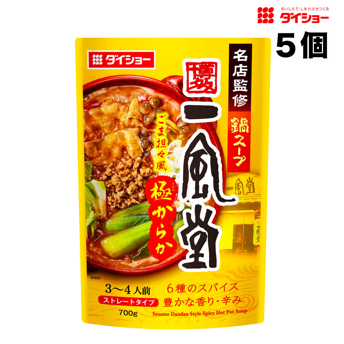 ダイショー 名店監修鍋スープ 一風堂 ごま担々風極からか 鍋用スープ 700g × 5袋 鍋つゆ 鍋の素 ストレートタイプ 送料無料(北海道・東北・沖縄除く)