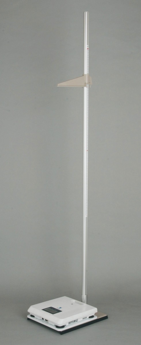 堤製作所の身長計付デジタル体重計AHPは、手動式のアナログ身長計にデジタル体重計を合体させた製品です。専用台座を設け体重計を設置した高さがゼロになるように身長計の目盛が調整されています。身長計は支柱の左右に目盛がついていますので両側からの読み取りが可能。測定範囲は600mm〜2000mmとなります。体重計はデジタル表示で、タニタ製WB-260Aを採用しています。ひょう量は200kg、目量は0〜100kgまで100g単位、100〜200kgまで200gの検定品です。省スペースを実現させた製品です。受注生産品のため、発送は約1週間〜10日間の予定となります。