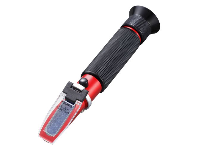 ご注意 | Brix(%)目盛は、蔗糖溶液100gの中に含まれる蔗糖(g)をパーセントで表したもので蔗糖濃度を意味します。他の物質を主体とした溶液で、特に定量的に濃度を知りたいときは換算表が必要です。 本製品は全反射の原理にもとづいた屈折率を利用し、液体濃度を測定する機器です。そのため、光を通さない液体(牛乳など)にはご使用できません。 |