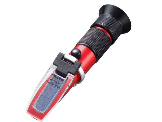 ご注意: | Brix(%)目盛は、蔗糖溶液100gの中に含まれる蔗糖(g)をパーセントで表したもので蔗糖濃度を意味します。他の物質を主体とした溶液で、特に定量的に濃度を知りたいときは換算表が必要です。 本製品は全反射の原理にもとづいた屈折率を利用し、液体濃度を測定する機器です。そのため、光を通さない液体(牛乳など)にはご使用できません。 |