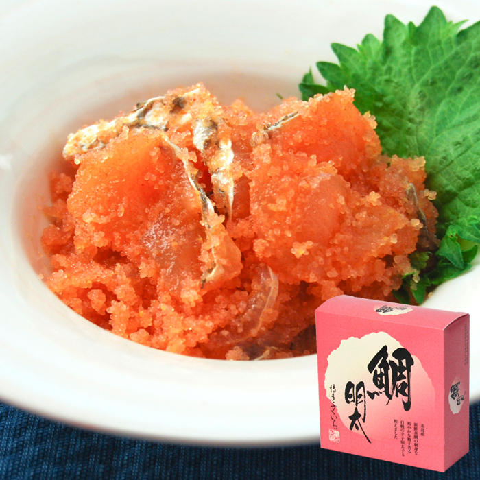 | 原材料名 | すけとうだらの卵巣(ロシア又はアメリカ)、真鯛(福岡県産)、発酵調味料、食塩、唐辛子、柚子ペースト、かつお風味調味料/調味料(アミノ酸等)、甘味料(ソルビット)、酸化防止剤(ビタミンC)、ナイアシン、酵素、着色料(赤102、黄5、赤3)、発色剤(亜硝酸Na)、(一部に小麦・大豆を含む) |