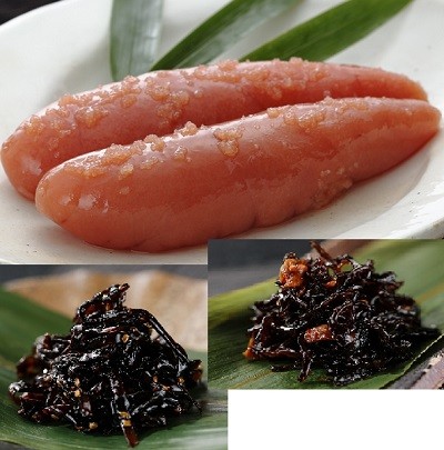 【詰合せ内容】 ●極上からし明太子330g、●庄屋さんの佃煮2点(昆布150g、きくらげ150g、のり130g、七彩昆布100g、山ごぼうときくらげ150g、焼き生姜150gの6点の中から2商品)