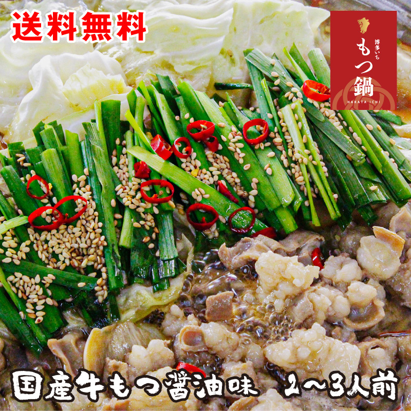 博多もつ鍋セット(醤油味)2〜3人前 送料無料 国産牛もつ使用 簡単料理レシピ付 御中元 御歳暮 父の日 敬老の日