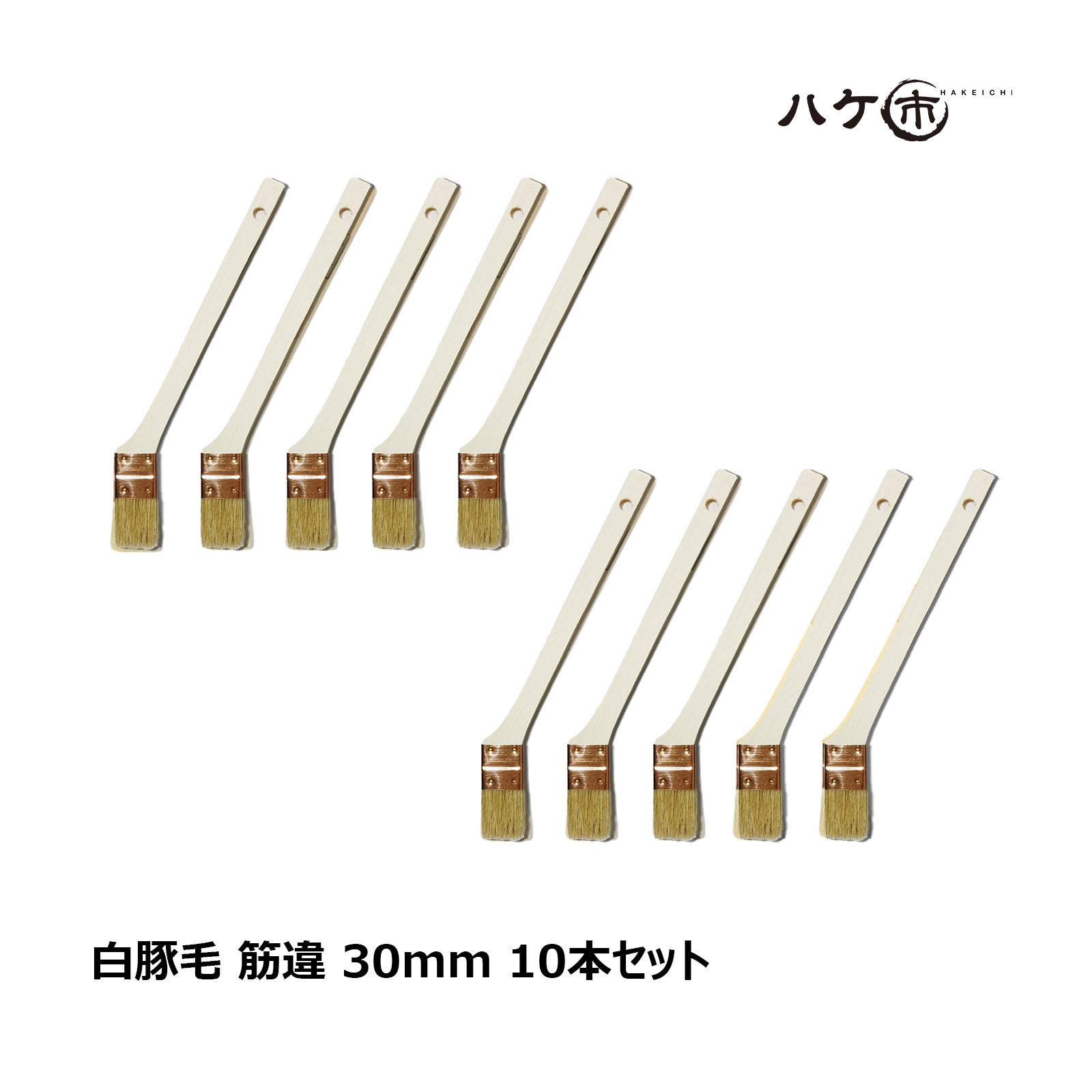 ハケ市 目地刷毛 油性 水性 兼用 白豚毛 筋違 30mm 10本セット | 刷毛 ハケ DIY 塗装用 ペンキ 高粘度塗料