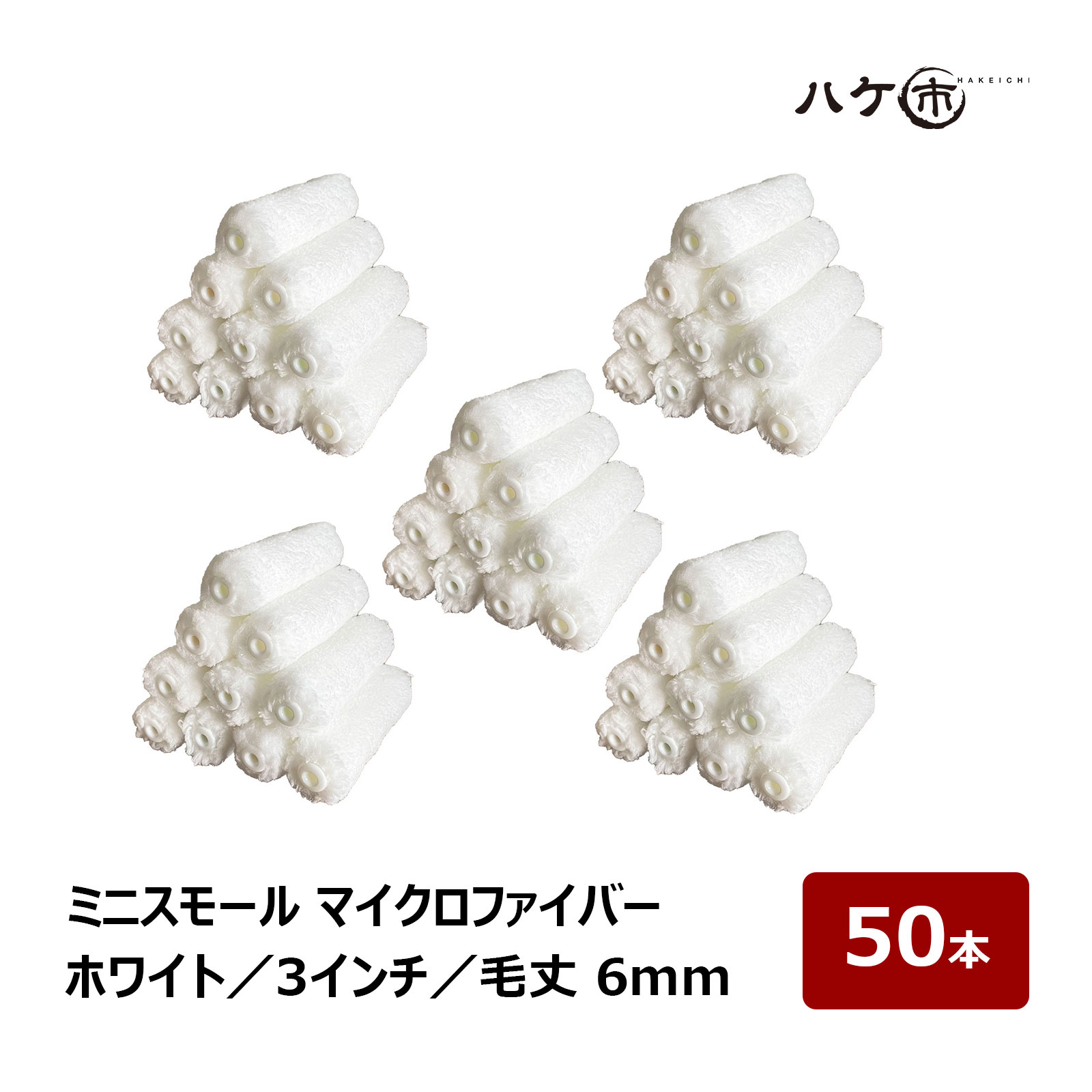 ミニスモールローラー マイクロファイバー ホワイト 短毛 毛丈 6mm 3インチ 50本 | ペイントローラー ミニコロ 針金ローラー 塗装 内装 外装 まとめ買い