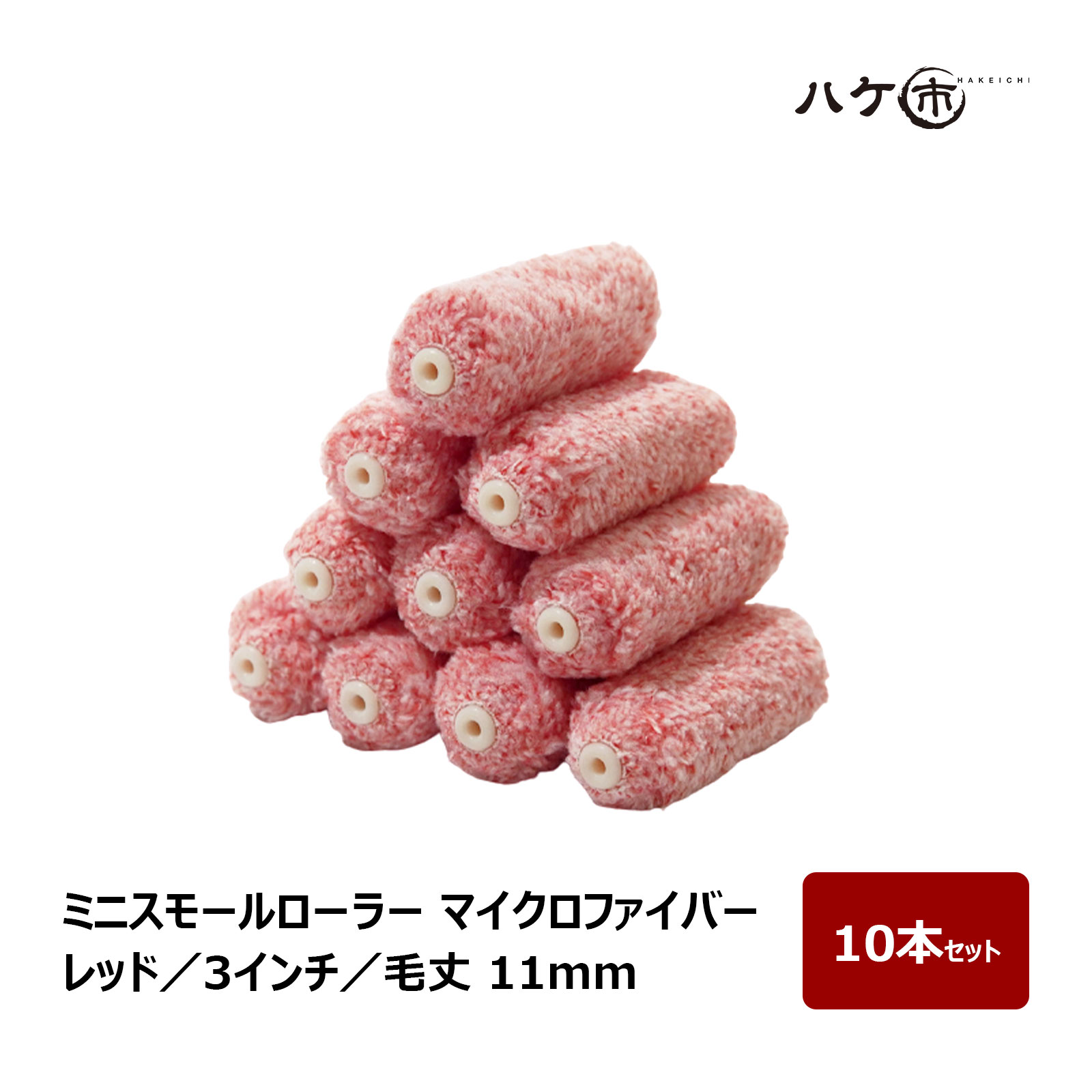 ミニスモールローラー マイクロファイバー 混毛 レッド 毛丈 11mm 3インチ 10本セット | ペイントローラー ミニコロ 針金ローラー 塗装 内装 まとめ買い