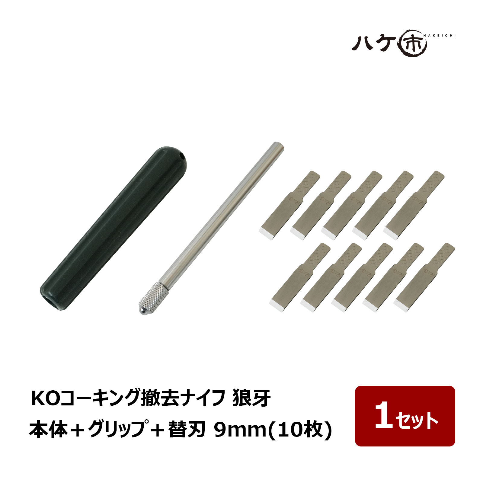 KOコーキング撤去ナイフ 狼牙 本体 グリーングリップ 替え刃 9mm 10枚 1セット| シーリング コーキング 撤去工具 シーリング撤去 三面接着 切削 除去剤