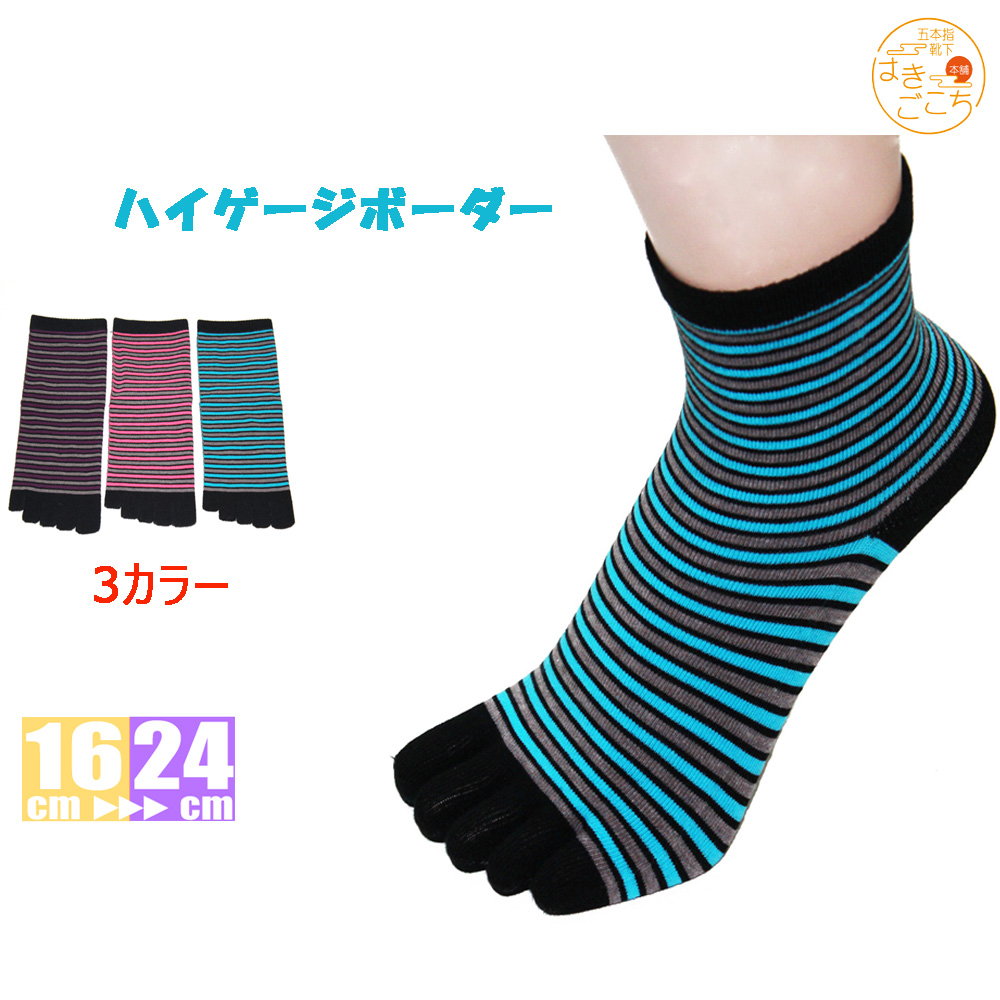 5本指ソックス 日本製 五本指靴下 ハイゲージ ボーダー 五本指ソックス キッズ レディース メンズ 靴下 ソックス 抗菌 消臭 クルー丈
