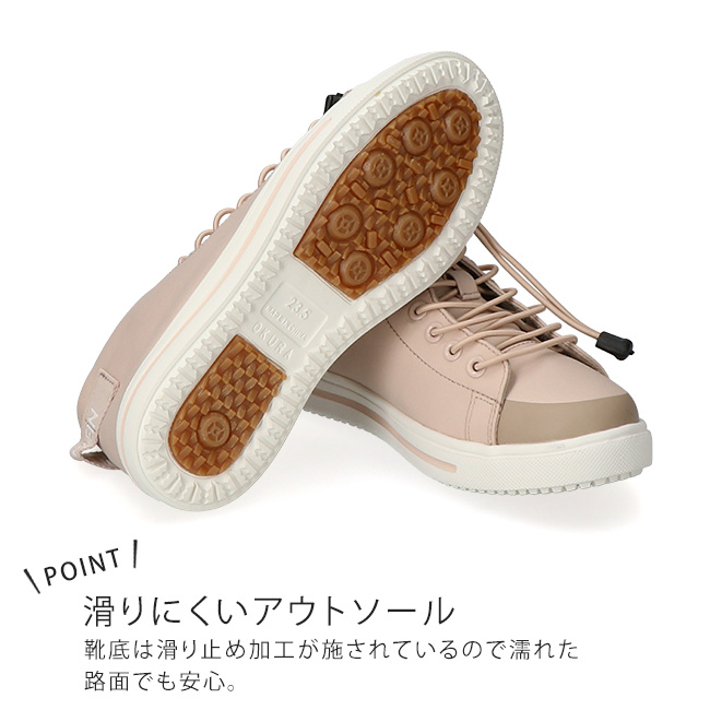 靴底は滑り止め加工が施されているので濡れた路面でも安心。