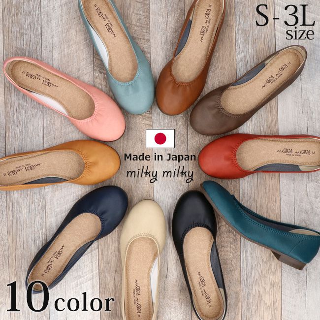 シンプル無地のバレエパンプス 日本製 新色追加♪選べる10色 人気のぺたんこバレエシューズがカラー展開豊かに登場!インソールはクッション性があって履きやすくてアッパー内側は布張りでさわやか。★(普段23.5〜24cmのスタッフ : Lを試し履き) Lがちょうどいいサイズ。【Mサイズの参考サイズ明細】 【靴幅】・・約7.9cm 【甲周り(外寸)】・・約21.4cm 【ヒールの高さ】・・約1.5cm 【重さ】・・(片足)約130g 【アッパー】・・合成皮革 【ソール】・・合成底 【S(22〜22.5cm)/M(23〜23.5cm)/ L(24〜24.5cm)/LL(〜25.0cm)】