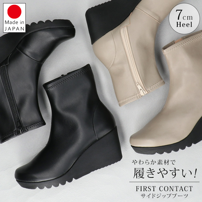 内側サイドファスナーで脱ぎ履き簡単。アッパーは伸縮性のあるストレッチ素材なのでフィット感も抜群。
