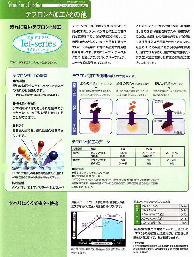汚れがつきにくく、落としやすい「テフロン」加工の甲材で靴を清潔に保ちます。