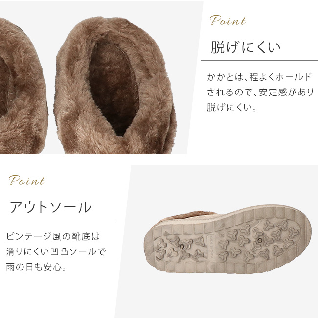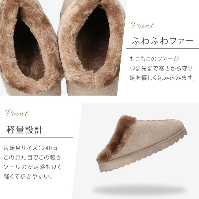 もこもこのファーがつま先まで寒さから守り足を優しく包みます。