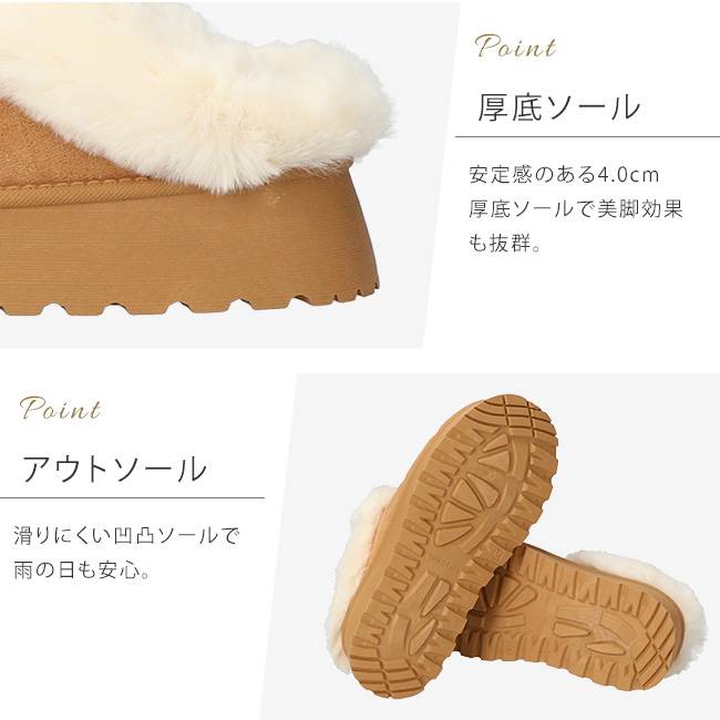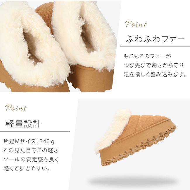 もこもこのファーがつま先まで寒さから守り足を優しく包みます。