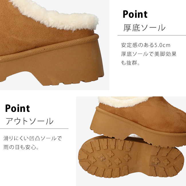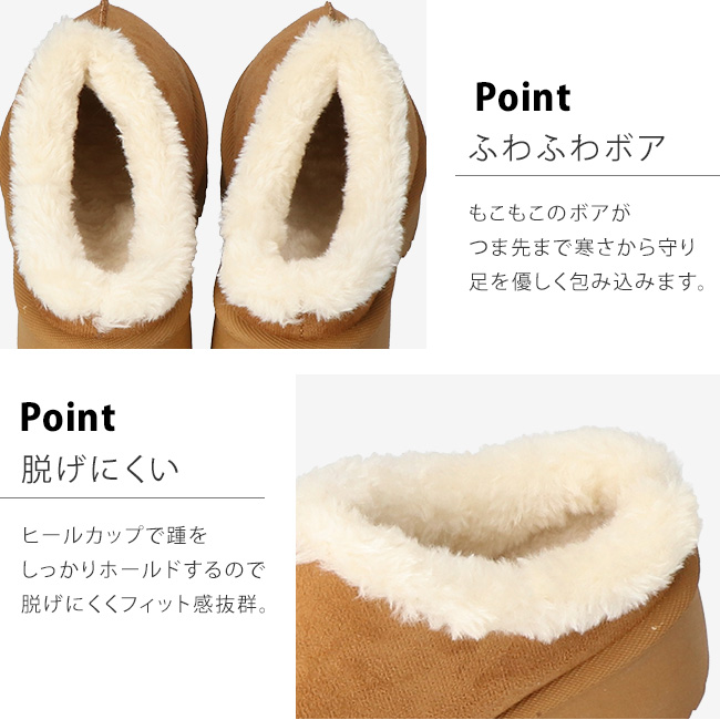 もこもこのボアがつま先まで寒さから守り足を優しく包みます。