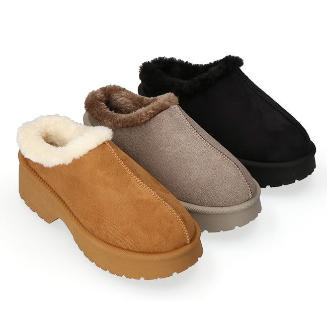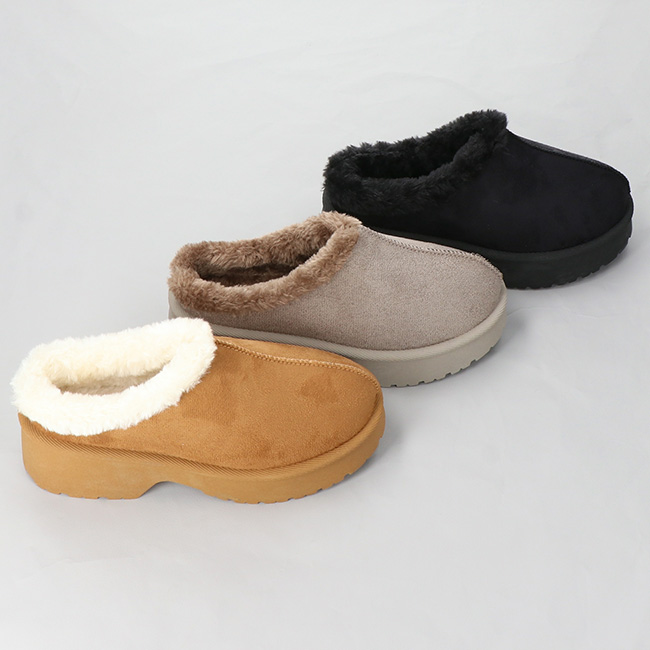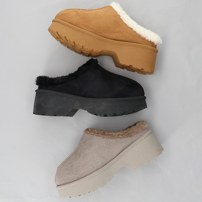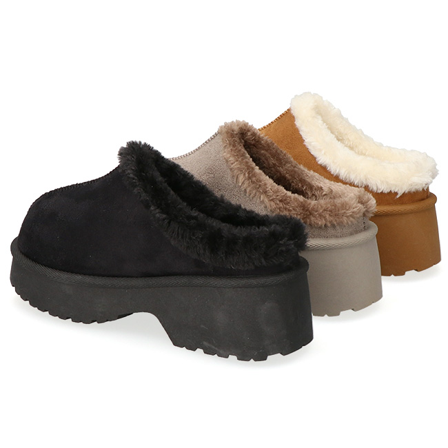 内側全体にボアが施されており、見た目も履き心地もあたたかい冬サンダル。