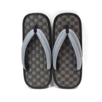 信貴 男性用 雪駄 草履 市松 黒畳 メッシュ鼻緒 ゴム底 日本製 グレー