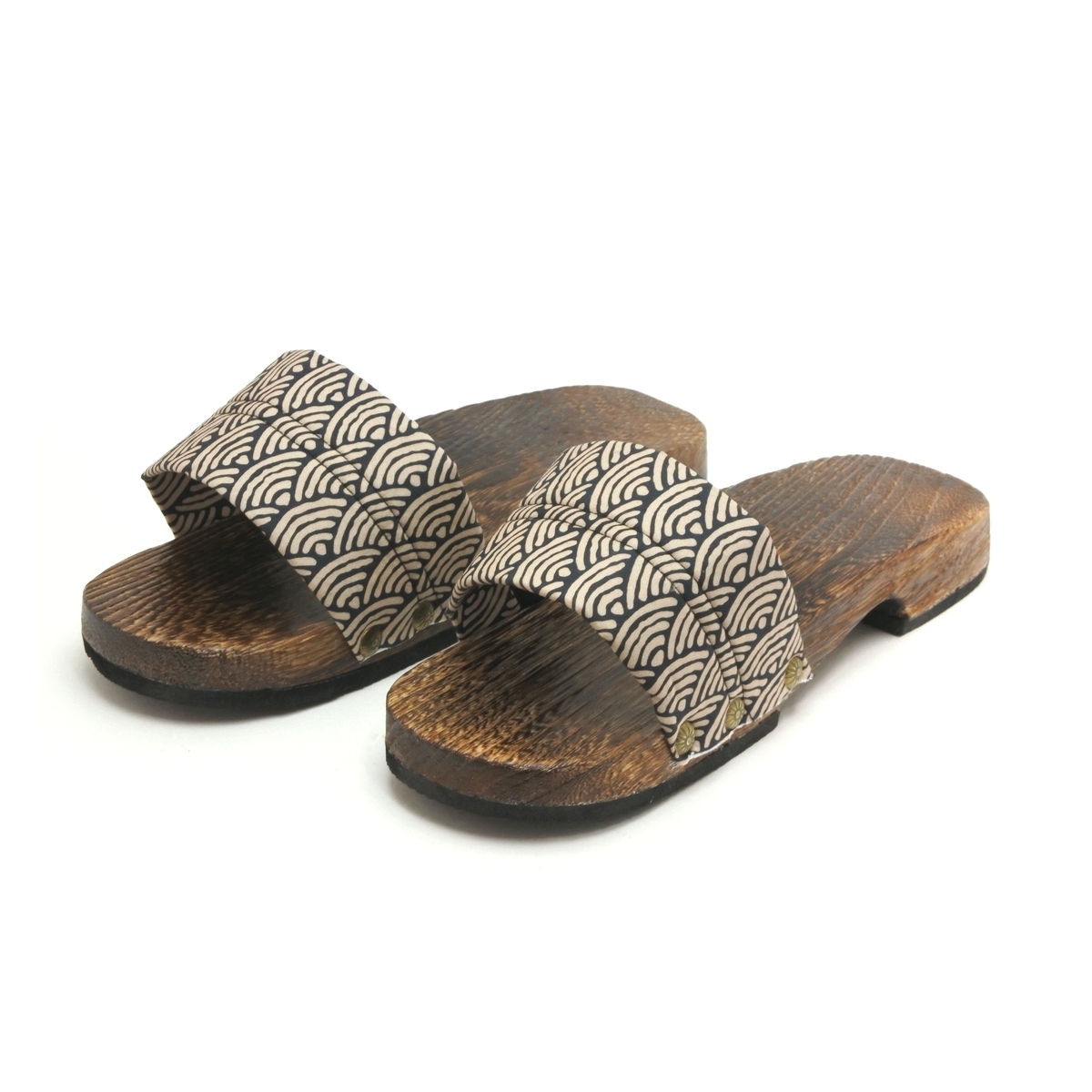 男性用 サンダル下駄 焼き 茶台 桐 和柄 軽量 モード下駄 青海波
