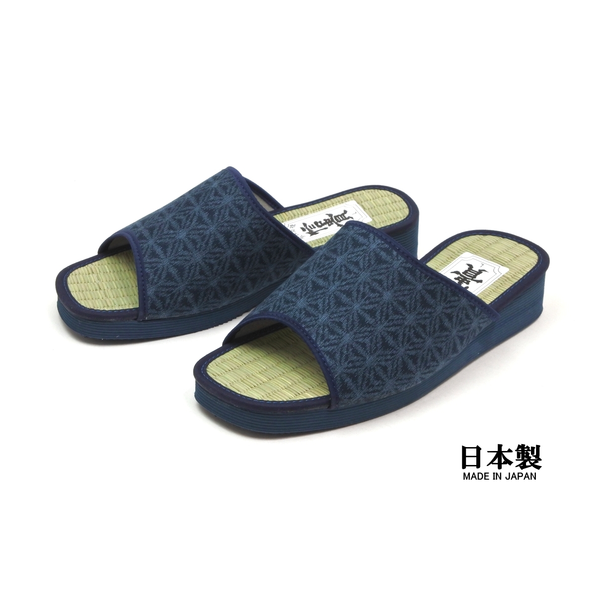 男性用 たたみサンダル 和柄 い草サンダル 軽量 前あき 日本製 七宝亀甲 ネイビー (アウトレット)
