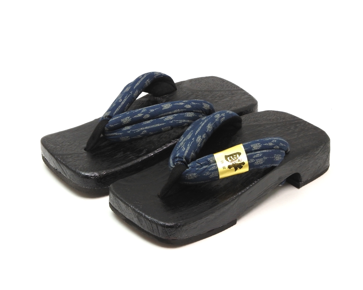 男性用 黒塗り 右近下駄 ソフト 桐下駄(きりげた) 絣模様 (アウトレット)