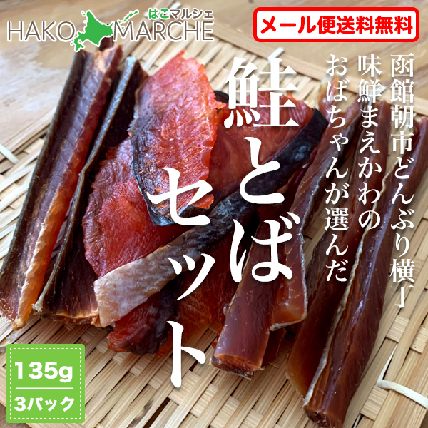 鮭とばセット 北海道産 送料無料 1,080円 鮭とば3種 45g×3パック 鮭トバ 函館朝市 珍味 父の日 プレゼント ポイント消化 ※メール便のため日時指定・代引不可