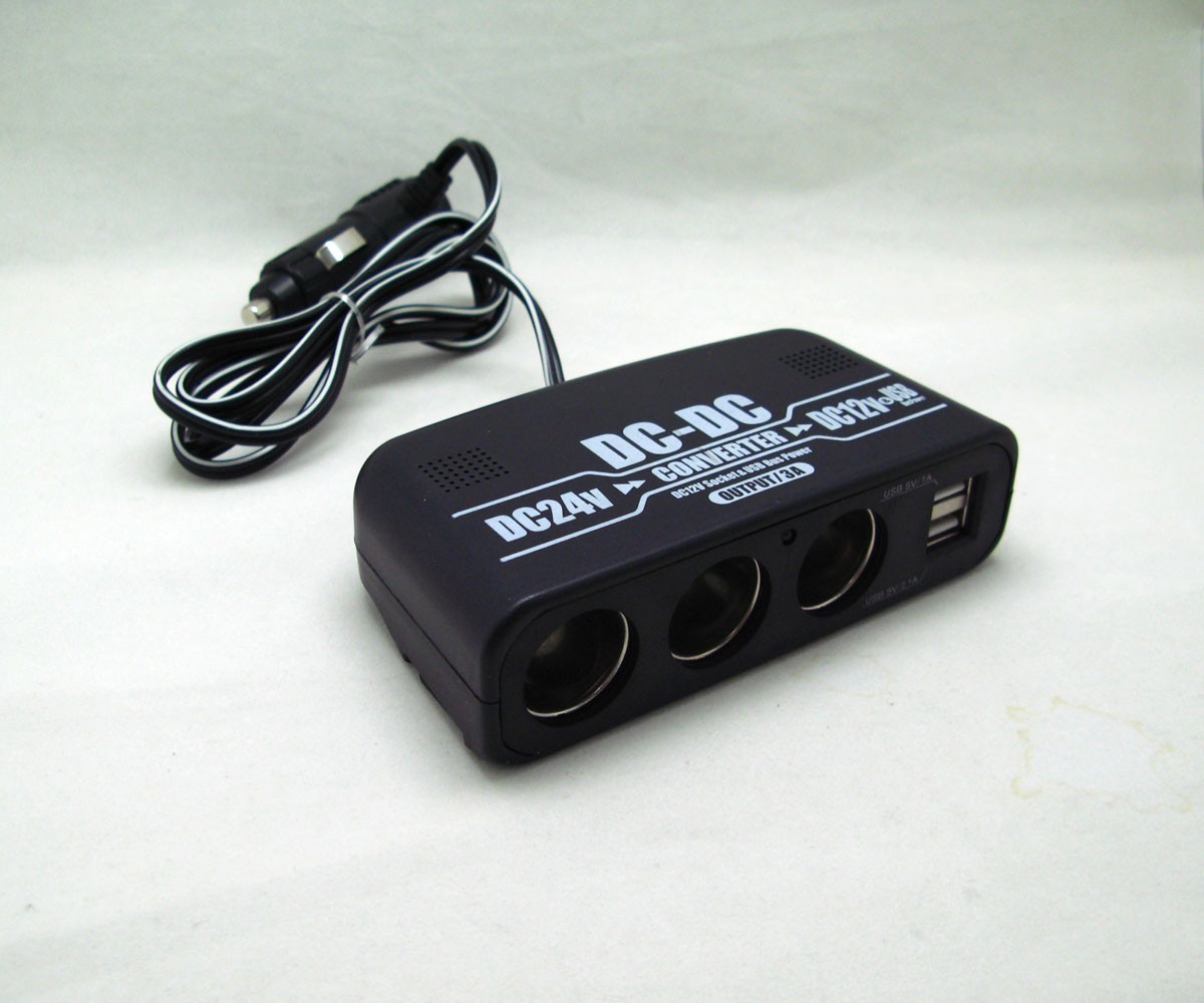 DC-DCコンバーター 24V→12V MAX3Aまで BS-250 24V電圧から12V電圧に変換器 シュガーソケット3口・USB2口