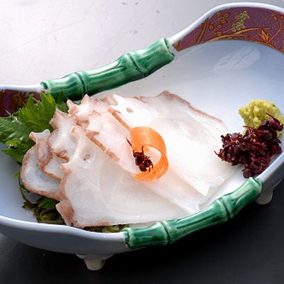 北海道産の水だこを薄いお造りにしました。新鮮なタコ特有のやわらかさが楽しめるので、お刺身にお付け出しに最適です。