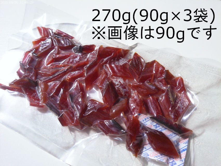 Bonusストア+参加中 鮭とば 皮なし 1口サイズカット 270g(90g×3袋) 北海道産鮭 送料無料 ゆうパケット(メール便)発送 代引き不可 着日時間指定不可