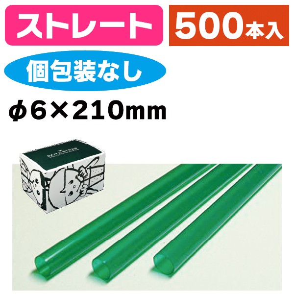 (ストロー)6×210mmストレート包装なし緑 500本入/1ケース入(K01-18613)