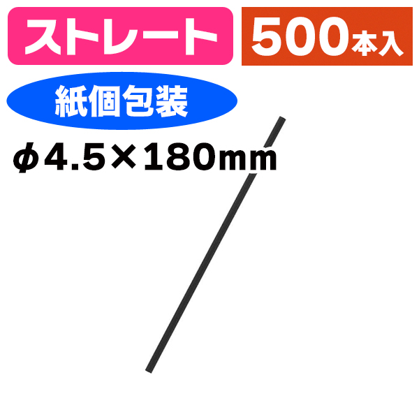 (ストロー)ストレートストロー4.5×180 黒 紙包装/500本入(K05-4967718005306)