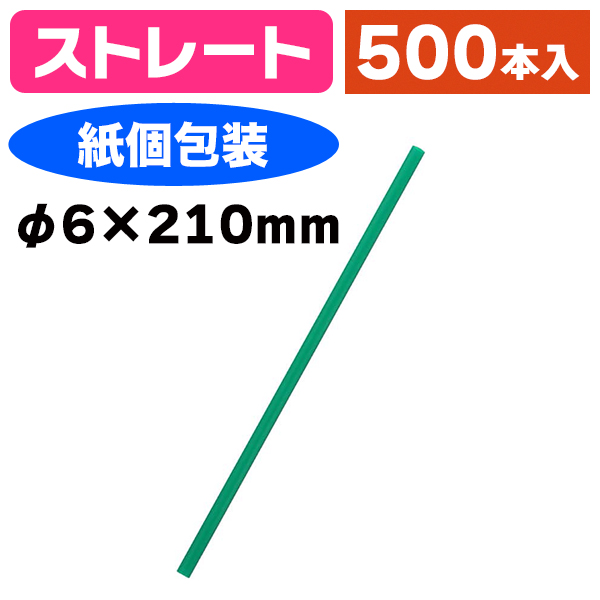 (ストロー)バイオストレートストロー6×210 緑 紙包装/500本入(K05-4967718947606)