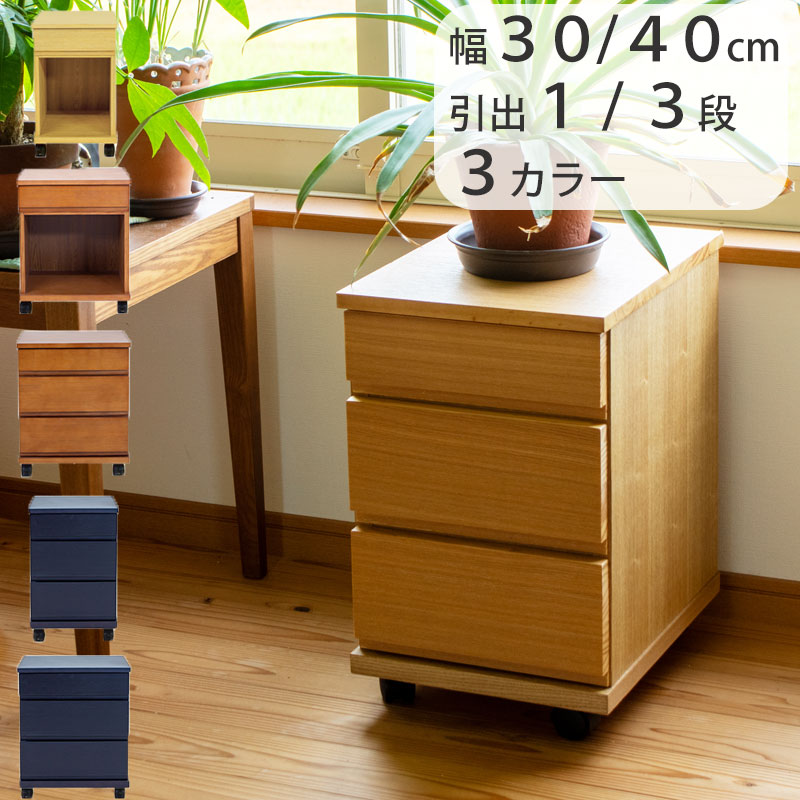 ナイトテーブル ベッドサイドテーブル ソファサイドチェスト 完成品 幅30cm 幅40cm タモ材 引出し付 3段 キャスター付