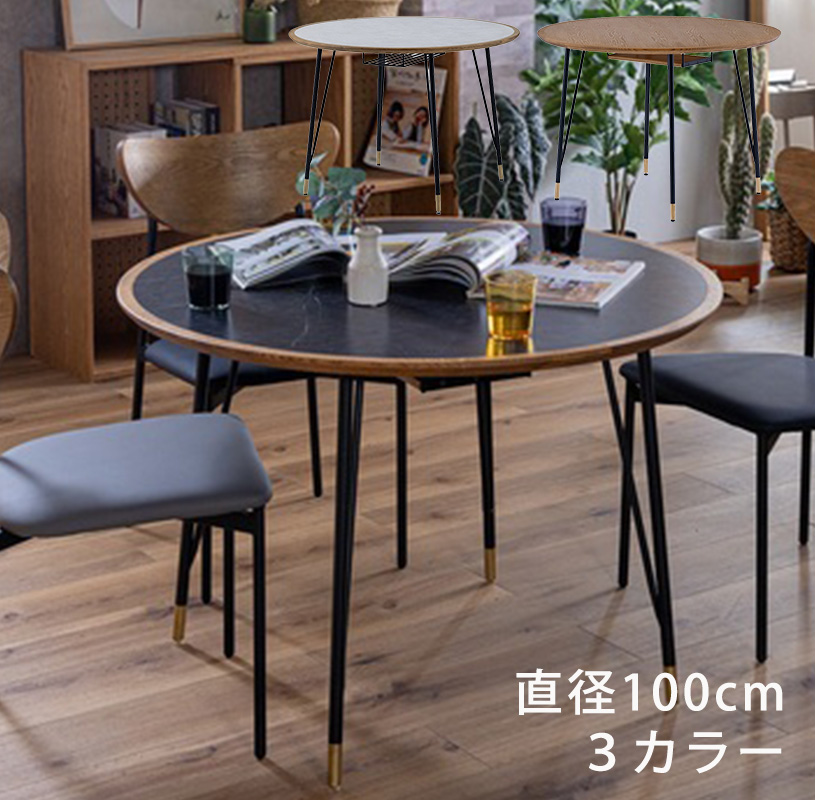 ダイニングテーブル 丸テーブル ラウンドテーブル カフェテーブル テーブル 丸型 無垢 幅100cm ナチュラル メラミン 石目調 MARURU マルル nora ノラ 爆買