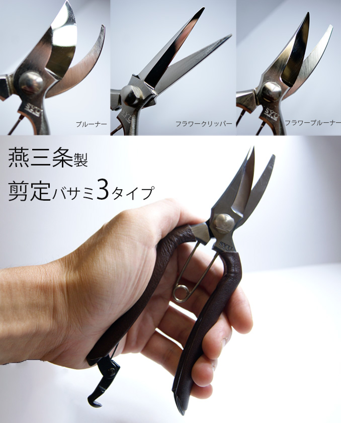 剪定バサミ 剪定ばさみ 植木鋏 花鋏 摘果ばさみ ガーデニング 家庭菜園 プルーナー・クリッパー 3タイプ 本革巻き 燕三条 日本製 爆買