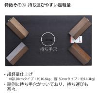 | サイズ | 幅120cmサイズ: 幅120cm x 奥行70cm x 高さ35/40/45/50cm(5cm毎の高さ調節機能付) (1200mm x 700mm x 350/400/450/500mm) 重量:約10.6kg 幅150cmサイズ: 幅150cm x 奥行85cm x 高さ35/40/45/50cm(5cm毎の高さ調節機能付) (1500mm x 850mm x 350/400/450/500mm) 重量:約14.3kg |