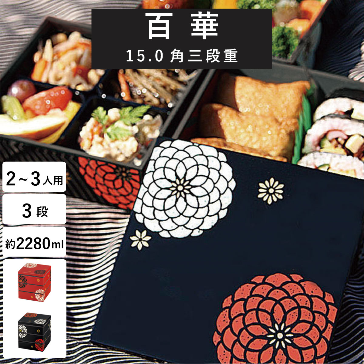 重箱 3段 おしゃれ レビュー特典有 HAKOYA 15.0角三段重 2280ml 百華 日本製