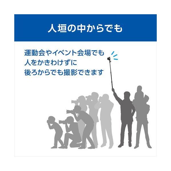 狭い場所や人垣の中からでも撮影の幅が広がります。下端の石突を取り外せば延長ポールとして使うこともできます。
