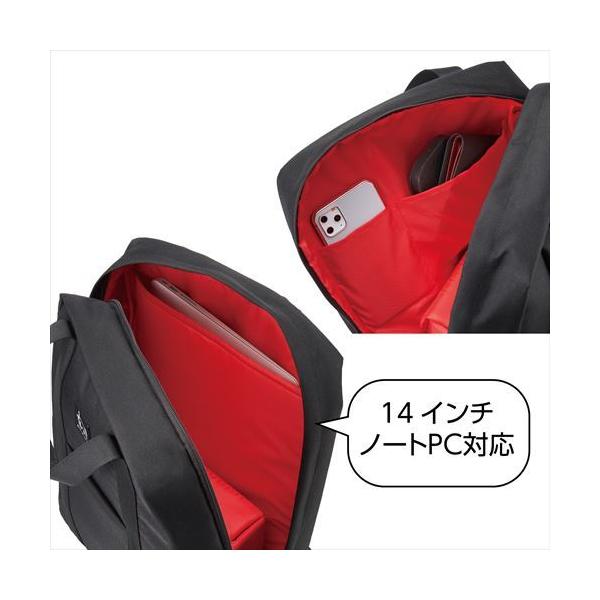 内部には小物収納用のポケットや、14インチ程度のノートPCが収納できるクッション入りポケットがあります。