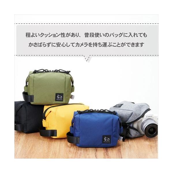 程よいクッション性があり、普段使いのバッグに入れても、かさばらずに安心してカメラを持ち運ぶことができます。 男女問わないデザインとカラーです。