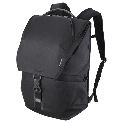 大口径レンズを装着した一眼レフカメラや高級ミラーレスカメラ2台と交換レンズ、外付けフラッシュ、クリーニングアイテム等を収納可能な大容量設計です。背面フラップ内側には16インチ程度のノートPC用スリーブと、アクセサリー類の収納に適した中身の見えるファスナーポケットを装備。前面フラップの天面ファスナー内側にも小物の収納に便利なファスナーポケットを備えています。