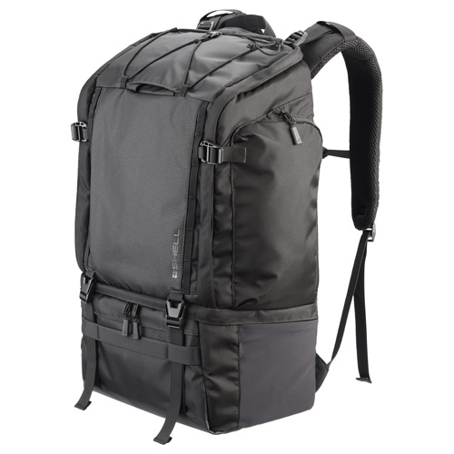 上下の仕切りを取り外し、レンズを下段に貫通させることで100-300mm F2.8などの超望遠レンズを装着した一眼カメラの収納も可能です。大容量ながら軽量設計で、バンジーコードやデイジーチェーンなど、トレッキング向けの装備も充実しています。
