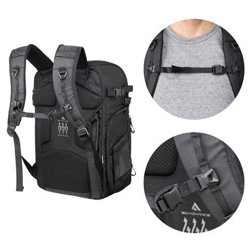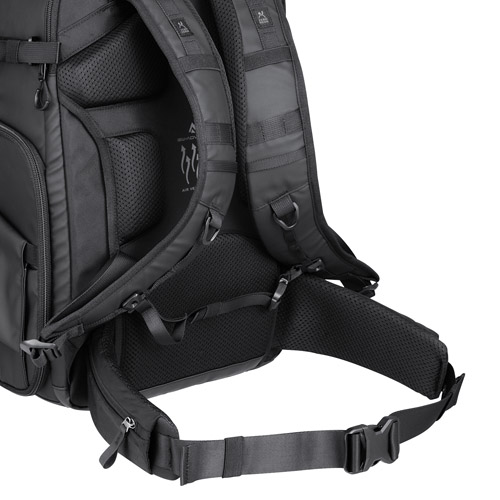 バッグ背面には、背中とバッグの間に空気の流れをつくるエアベンチレーションシステムを採用しています。汗や蒸れを抑え、長時間の装着でも快適な撮影をサポートします。