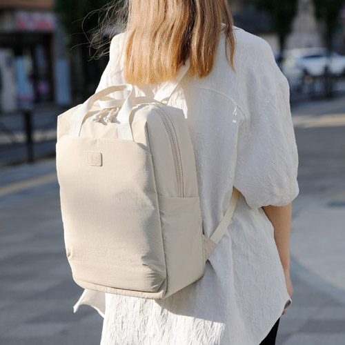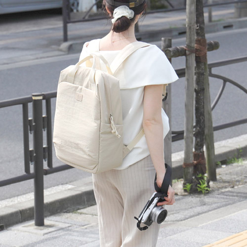 大きなハンドルが付いているので、手持ちでも快適に持ち運べます。バックパックとしても、手提げバッグとしても使える2WAY仕様は、タウンユースにぴったりです。