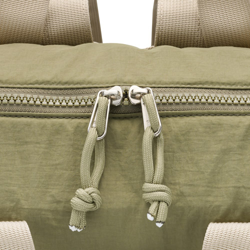 メイン開口部には、引っかかりが少なくスムーズに開閉できる軽量で丈夫な樹脂製のファスナーを採用。ファスナーを本体生地と同系色にすることで、デザイン性を損なうことなく、統一感のあるすっきりとした見た目に仕上げています。