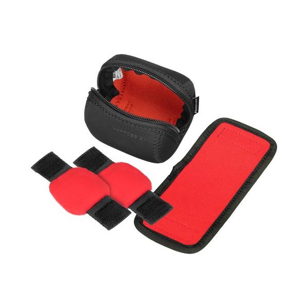| 伸縮性とクッション性に優れた伸縮素材 水に強くウェットスーツなどにも使用される伸縮性とクッション性に優れたクロロプレンゴムを採用しています。しっかりとしたクッション材が大切なレンズを傷や衝撃から保護します。(写真はブラック) | 取り外し可能なインナークッションと中仕切り付き レンズに合わせて調整可能なインナークッションと中仕切りが付いています。レンズの径や長さに合わせてサイズを調整することで内部でのぐらつきを抑え機材を守ります。(写真はブラック) |